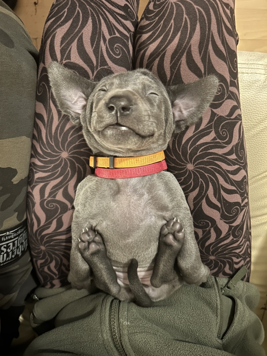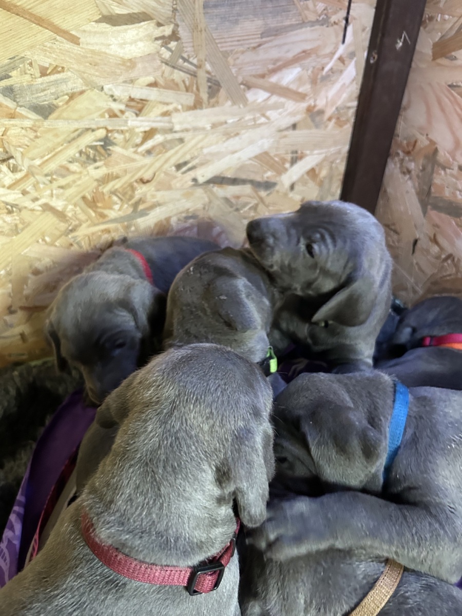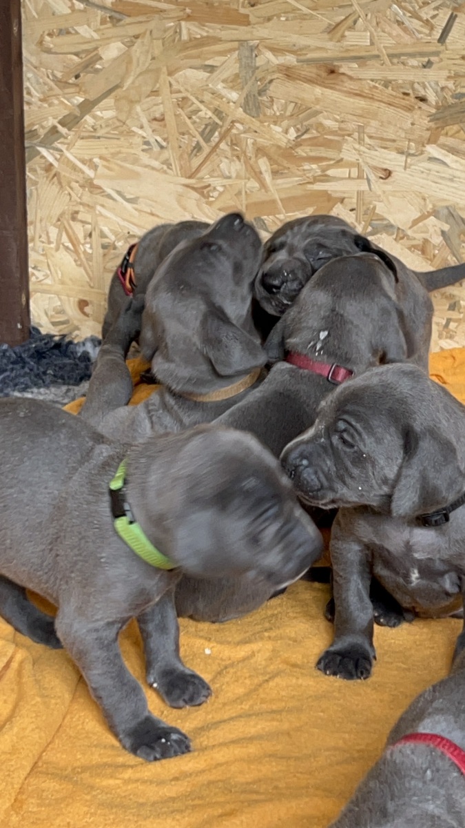 Všechna štěňata jsou modré barvy – po otci.