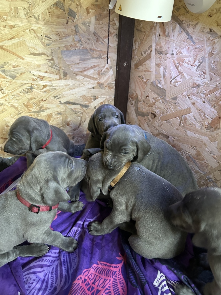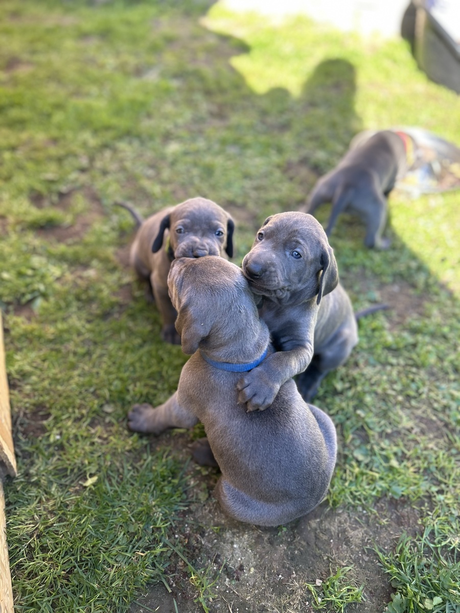 Zadáme štěňátka Výmarského ohaře krátkosrstého, modré barvy, s PP. Můžete se s ním věnovat chovu, výstavám, loveckýmu výcviku, canisterapii, sportu nebo ho mít jen jako parťáka. Štěňátka budou zvyklá i na děti. Cokoliv bude třeba, ráda pomůžu, poradím.
